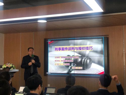 2019年4月12日星期五下午,由贵阳市律师协会刑事专业委员会主办、贵州瀛黔律师事务所承办的《刑事案件接待谈判及报价技巧》专题讲座在贵州瀛黔律师事务所成功举行。本次讲座由贵阳市律师协会刑事专业委员会副主任、贵州瀛黔律师事务所主任马子伟主讲,共计60余名律师、实习律师及其他有关人员参加。