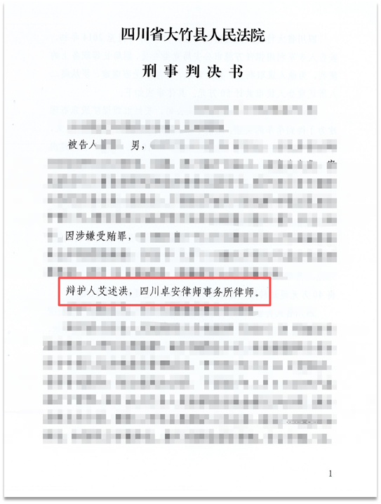 法院最终采纳了四川事务所艾述洪律师的辩护意见。尽管认定L某构成且存在索贿情节,但充分考量了其退赃、认罪态度及职业贡献。