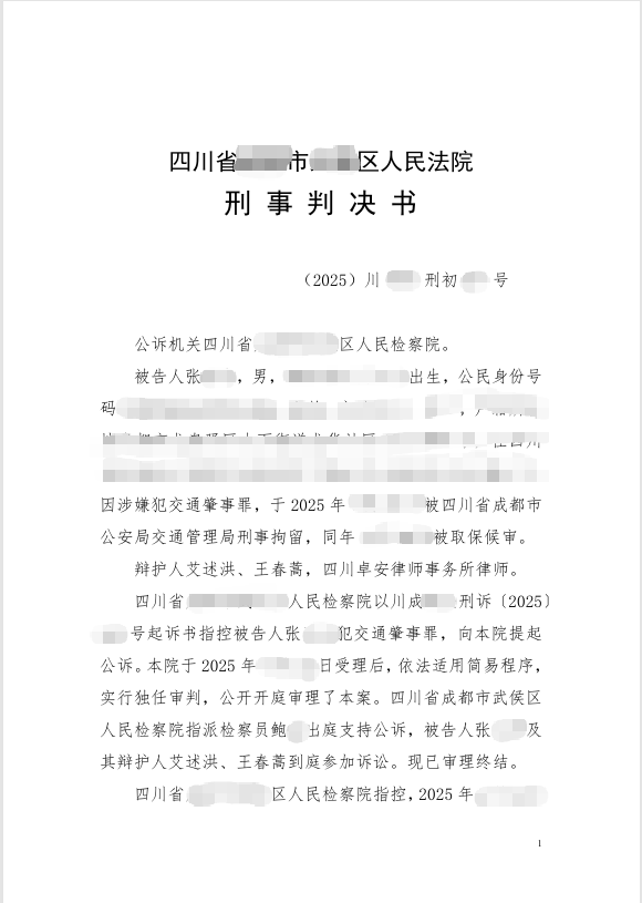 2025.09公诉机关指控,被告人Z某某违反道路交通运输管理法规,发生交通事故致一人死亡,且负事故全部责任,其行为已构成交通肇事罪。四川卓安律师事务所艾述洪律师团队介入本案后,积极与办案单位进行沟通,在律师团队多次沟通的努力下,在检察院阶段取得了一个较好的认罪认罚量刑建议。在法院阶段,辩护人提出被告人张玉忠系自首