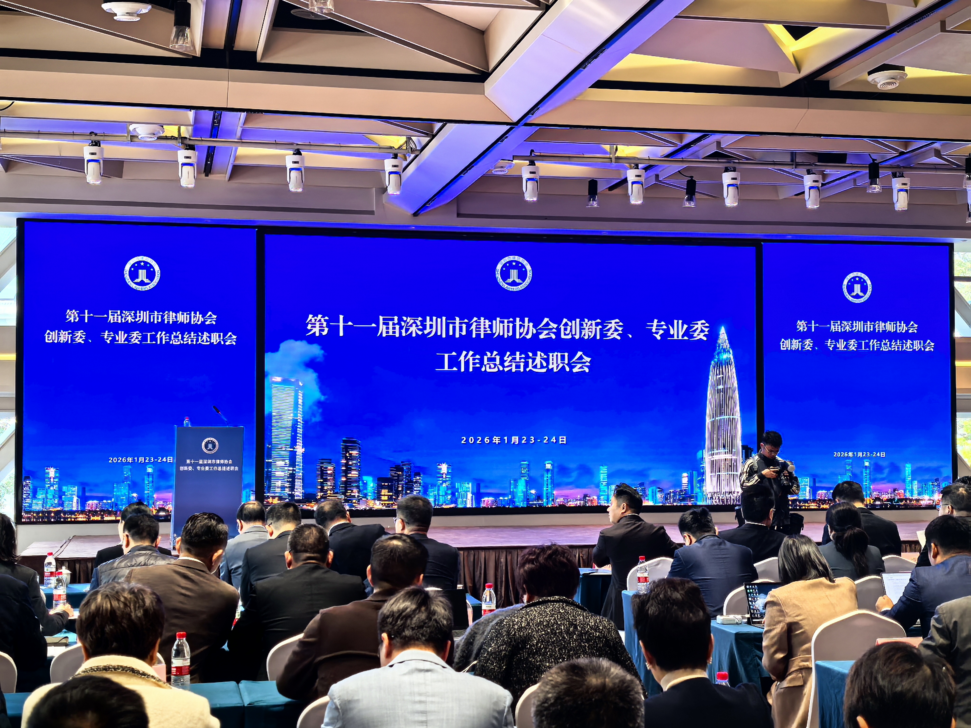 2026.012026年1月23日∽24日,深圳市律协专业委主任述职大会在盐田区万豪万枫酒店召开。任忠孙主任作为刑事犯罪预防委主任参加会议,并上台述职发言。任主任从日常工作、亮点成效和发展建议作了发言,获得与会人员好评。