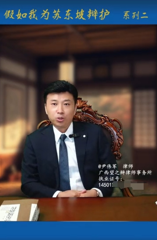 2025.102025年10月9日,广西望之辩律师事务所尹伟军律师推出并完成主题为《我的当事人无罪假如我为苏东坡辩护》系列之二的直播活动,说古谈今,把历史和文学结合法律知识创新融合,获得广大网友普遍好评。