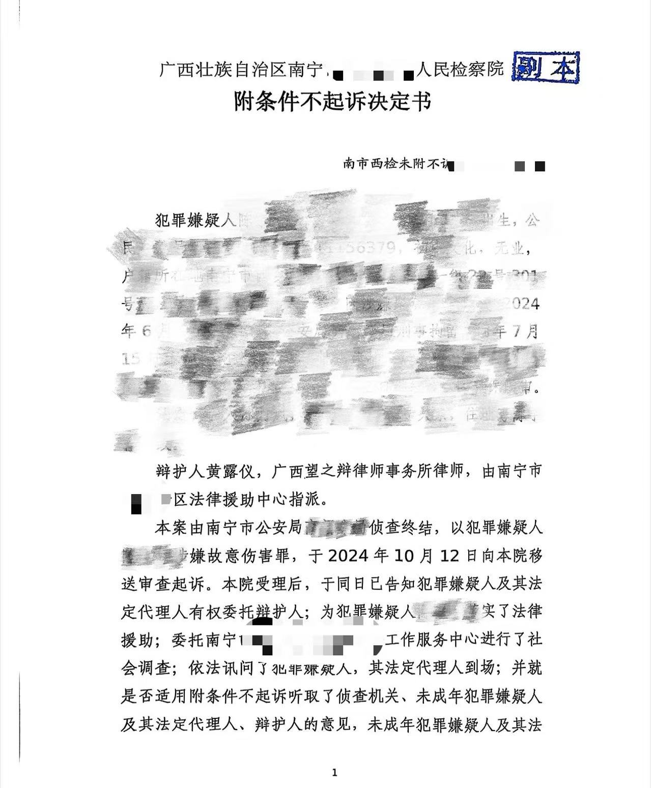 广西望之辩律师事务所黄露仪律师接受法律援助中心指派作为C某某的辩护人进行辩护,律师第一时间与C某某及其法定代理人沟通,详细了解案件经过,安抚其情绪,为其提供法律咨询。随后,律师拟定不构成故意伤害罪的法律意见书前往检察院与承办检察官沟通,就案件事实、证据以及法律适用等问题交换意见,积极争取不起诉。同时,律师协助C某某及其法定代理人落实赔偿事宜,确保取得被害人谅解。在检察院作出附条件不起诉决定后,律师继续关注C某某的表现,为其提供法律指导,帮助其顺利度过考验期。