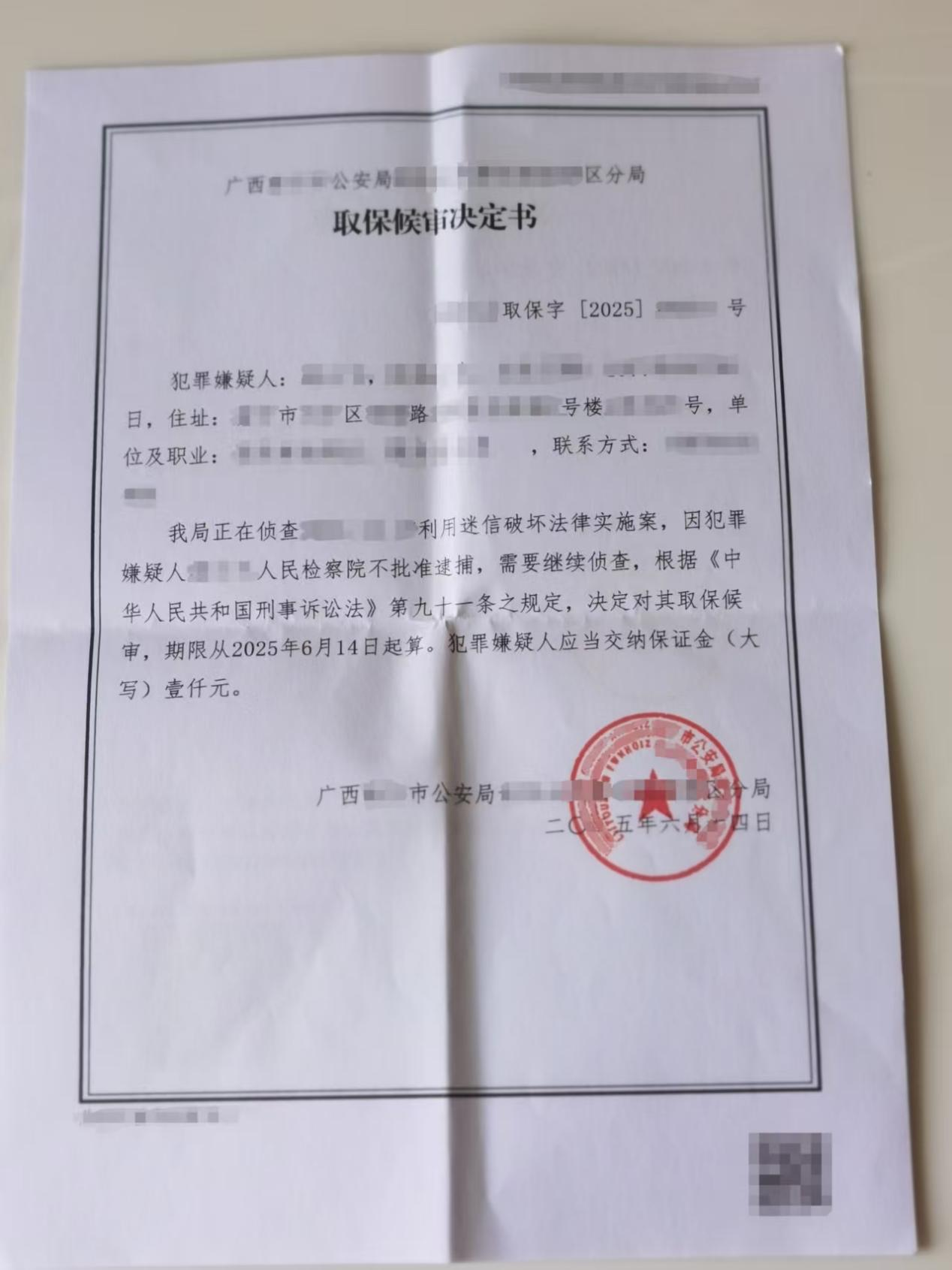 三、办案结果:2025年6月14日,检察机关对J某某不予批准逮捕,J某的刑事强制措施被变更为取保候审。