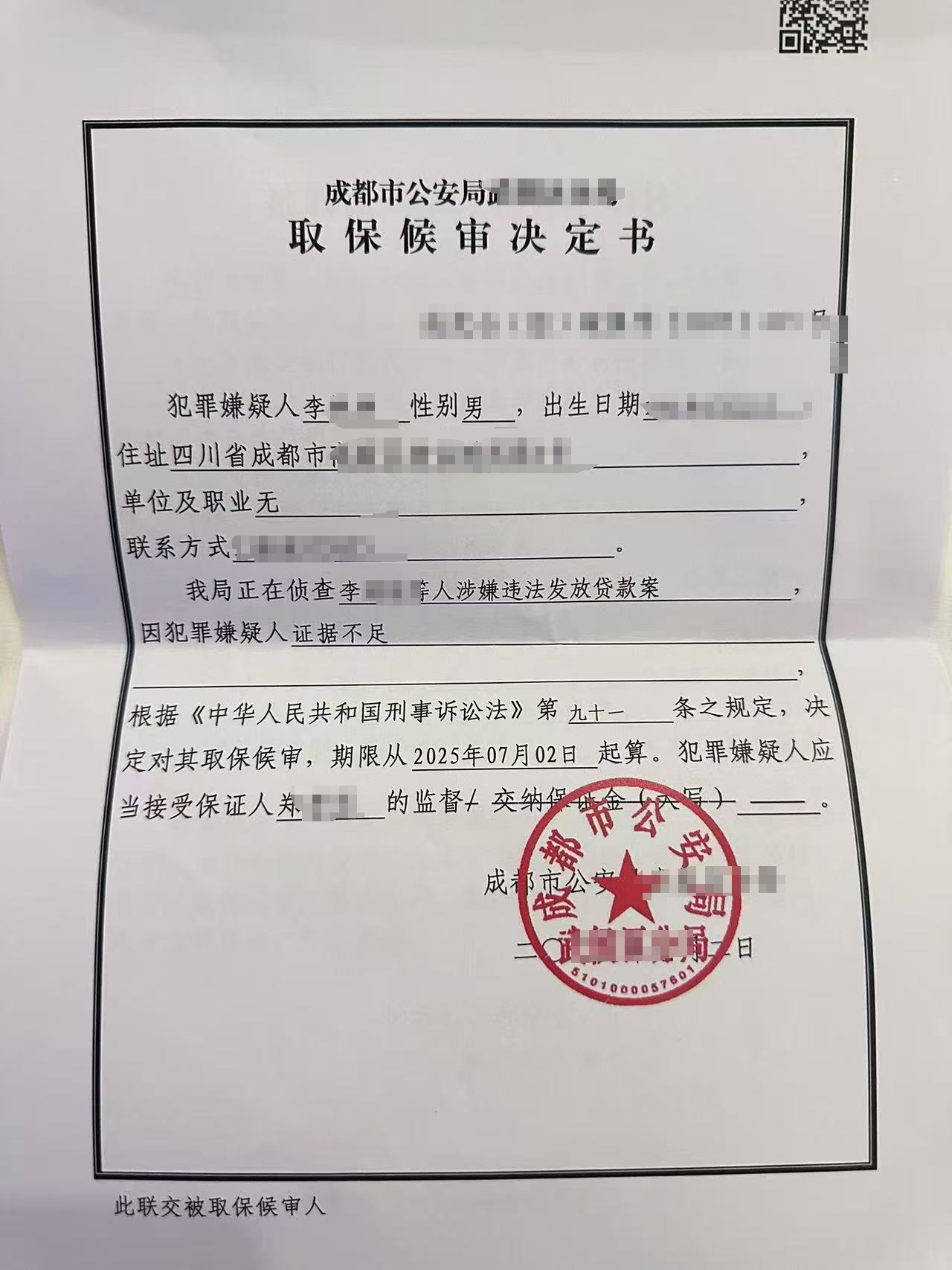 2013年, 当事人L某时任某银行金融市场事业部副总经理。据了解,该笔业务的性质存疑;且他没有在C某的《尽职调查报告》和低风险同业投资业务的《投资建议书》上签字;银行集体审议的这笔业务,他不是主审批人;按照职责分工,他亦没有项目前期调查义务以及审核银行保函真假的义务。然而,成都市公安局以L某涉嫌违法发放贷款罪予以刑事拘留并提请审查批准逮捕。