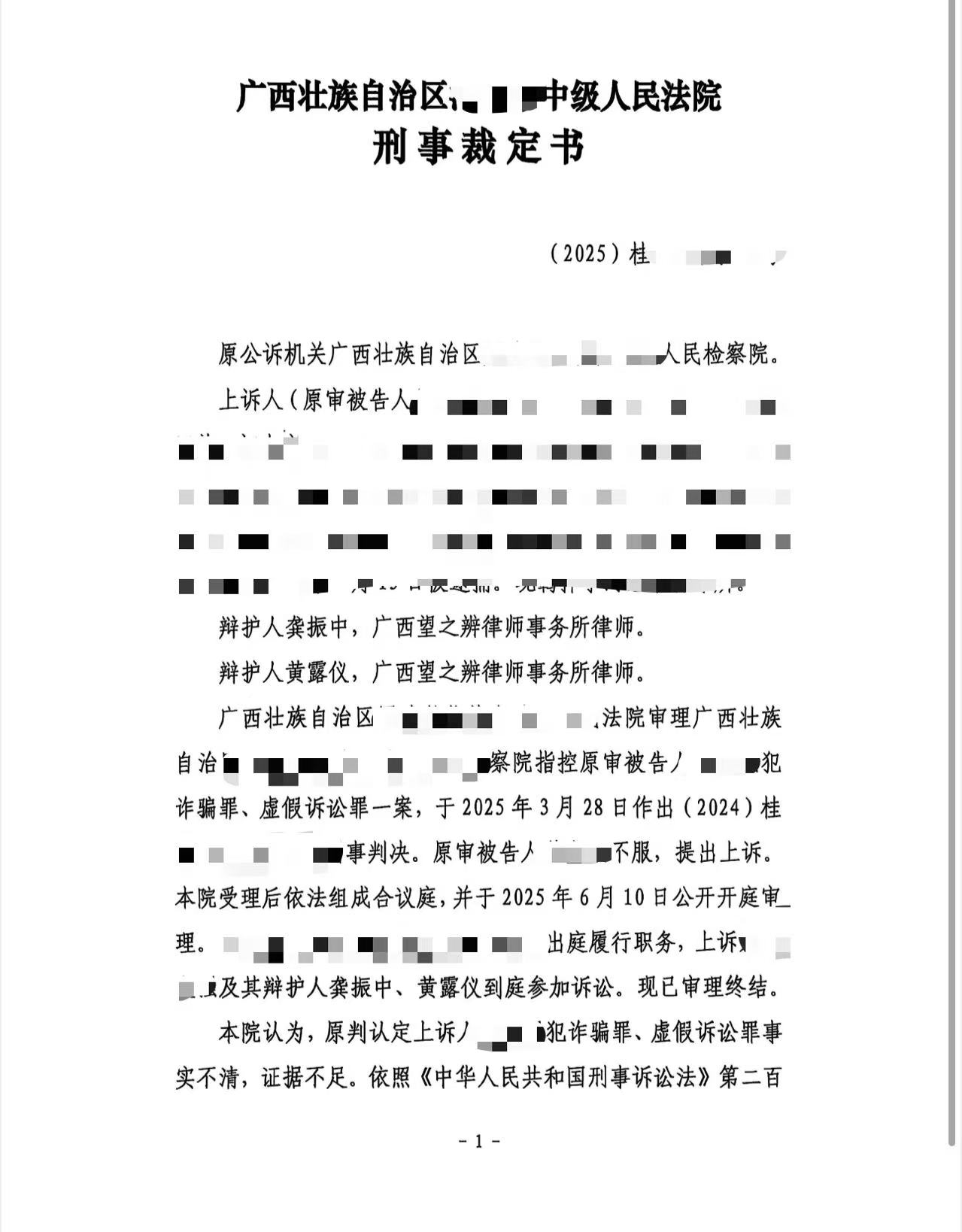 广西望之辩律师事务所龚振中、黄露仪律师接受上诉人F某某的委托,作为其二审阶段的辩护人。龚振中、黄露仪律师接受委托时,案件已在一审阶段陷入“绝境”——被告人F某某被重判14年,家属几近绝望。阅卷后,律师立即启动,详细阅卷,锁定关键证据,审计报告与政府合同,发现关键漏洞。申请法院调查取证、出庭等,突破一审认定构成事实的闭环,程序反击,绝境逆转,当庭指出一审法院未依法调取对被告人有利的证据,构成程序违法。为发回重审打开缺口。