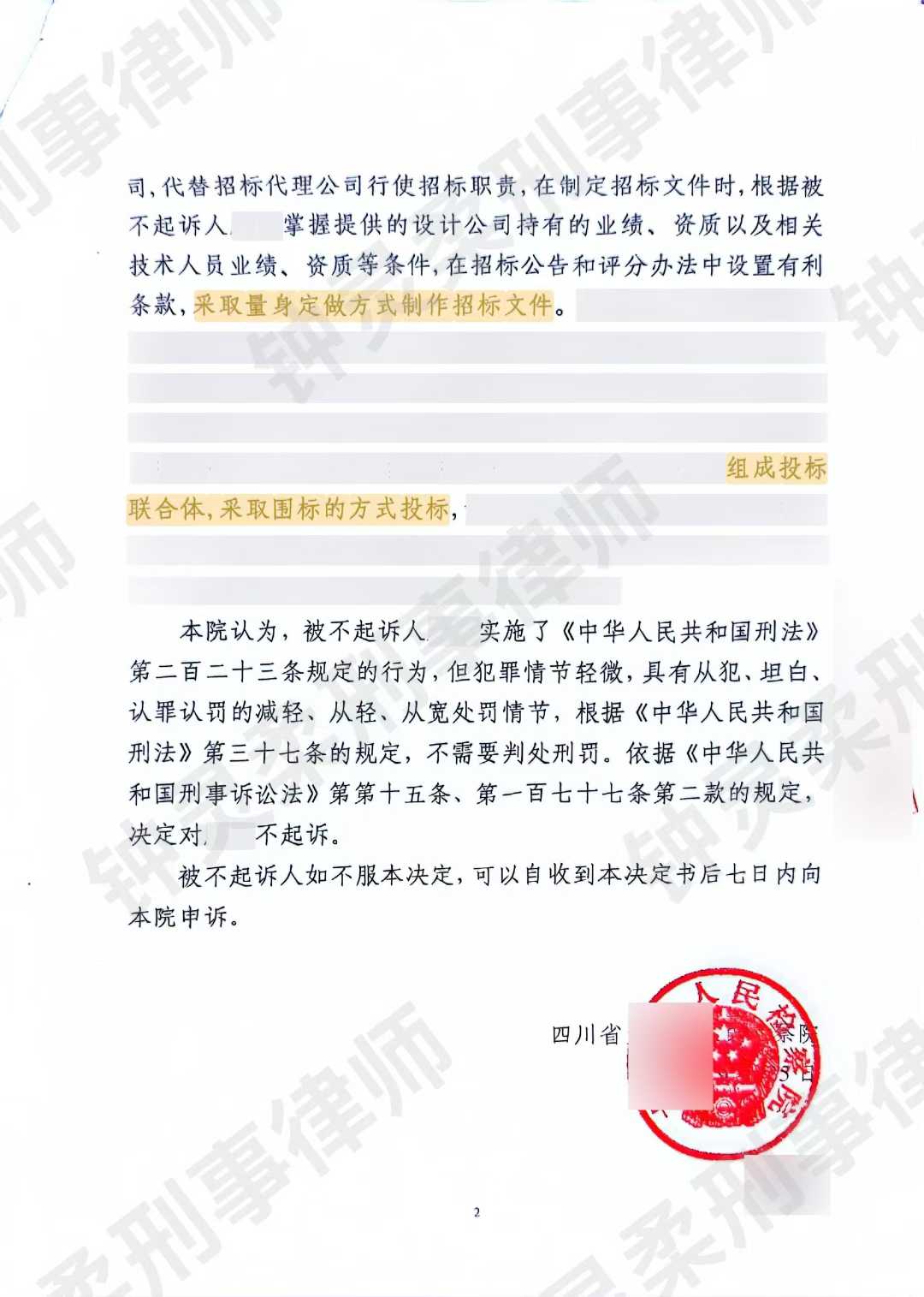 第五,当事人具备坦白、初犯、认罪悔罪情节,再结合办案机关当地类案,中标金额9千多万的都可以不起诉,举重以明轻,当事人更应当作出不起诉决定
