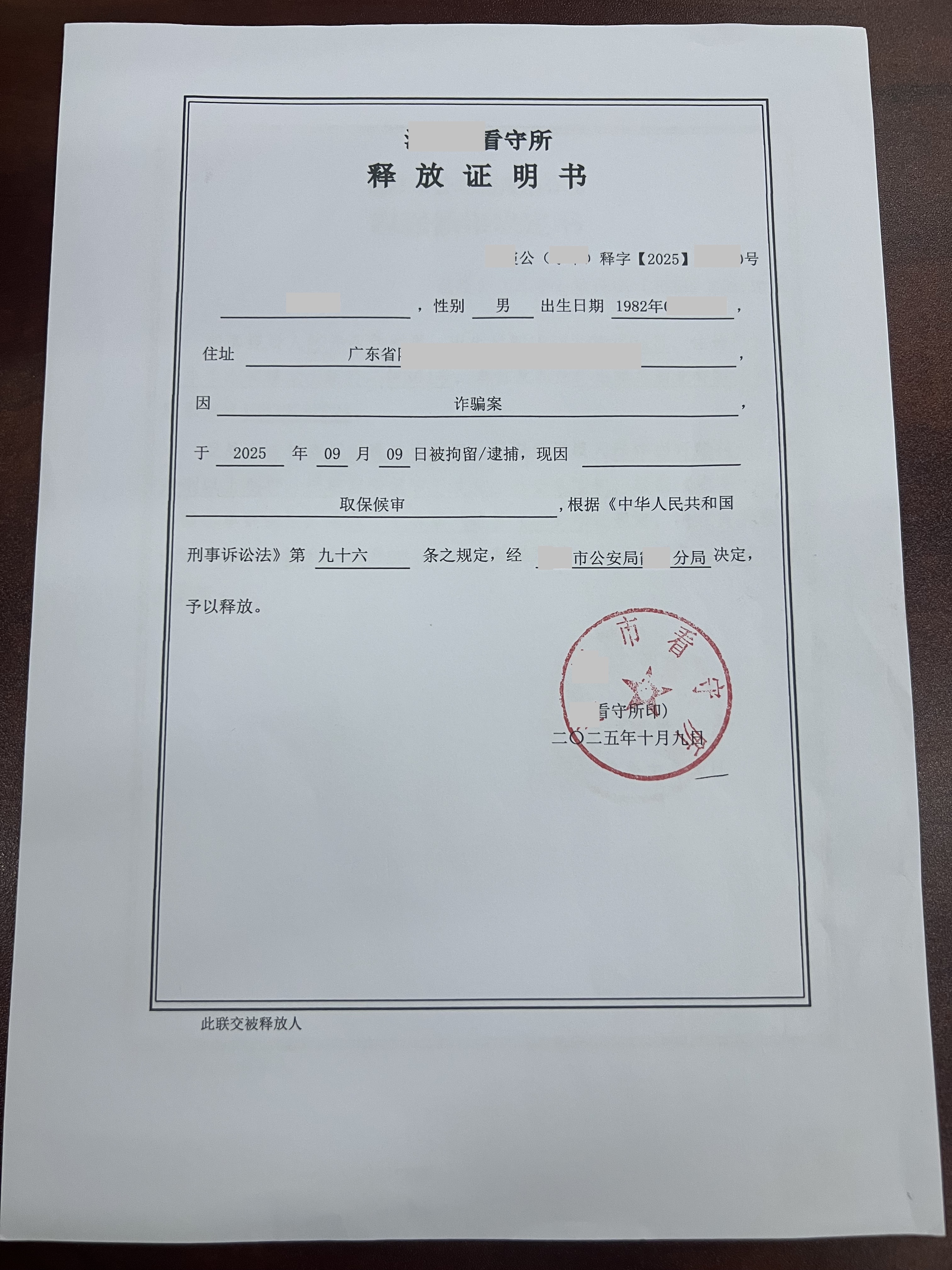 - 刑事拘留的30日内,提交申请书获批。