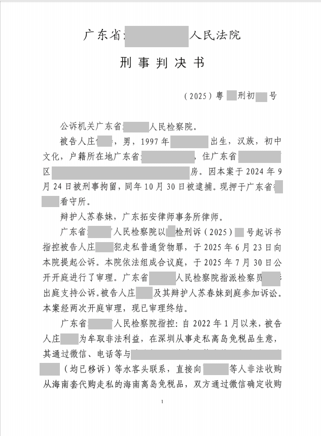Z某涉嫌走私普通货物罪,拓安刑辨团队苏春妹律师为其辩护,获轻判