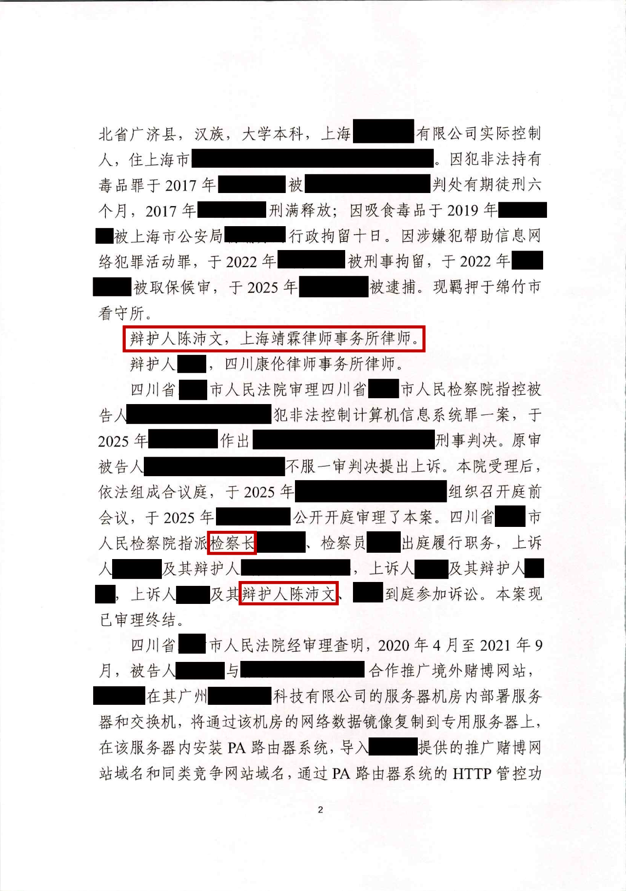 封面语:Z某被判非法控制计算机信息系统罪一案,上海靖霖律师事务所陈沛文律师团队在二审阶段接受当事人的委托。团队围绕系统归属、技术本质与罪名适用等核心问题展开辩护,并在检察长与法院院长同时出庭的背景下,成功争取减轻处罚。