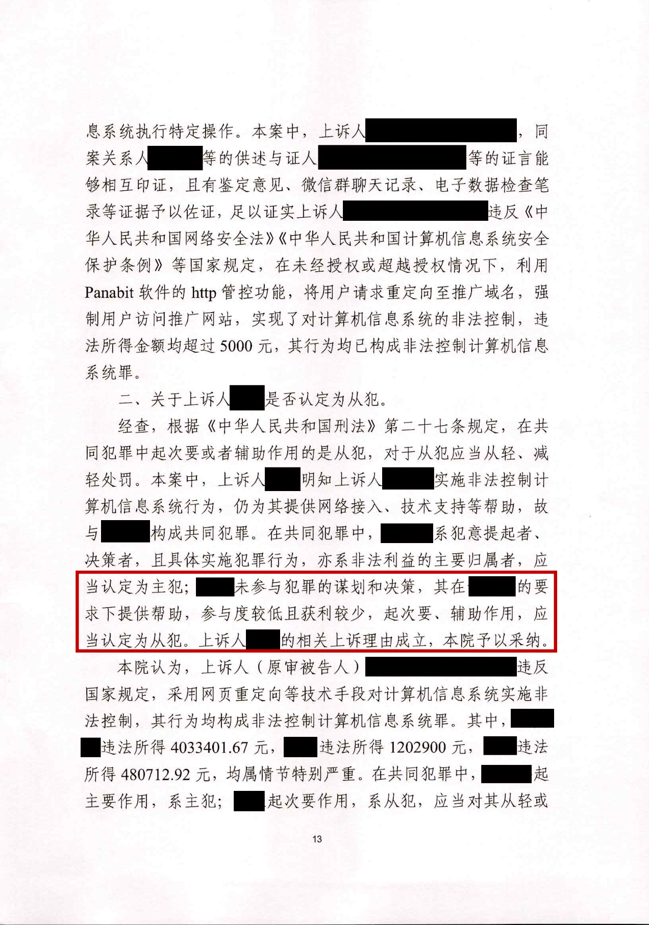 2.其次,在法律适用层面,一审判决未仔细审查原判各被告人所实施的具体行为,即便认定上诉人Z某构成犯罪,对于上诉人不具有相关计算机信息系统的控制权、未实际参与到流量劫持行为的实施、仅提供技术支持的行为,一审判决未准确认定上诉人Z某的行为性质,对上诉人适用罪名错误。如要追诉上诉人Z某的责任,对其提供网络接入技术支持的行为可以帮助信息网络犯罪活动罪认定;