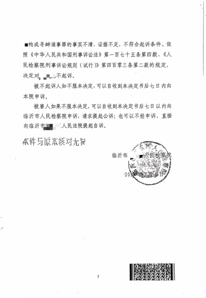 结果:不起诉