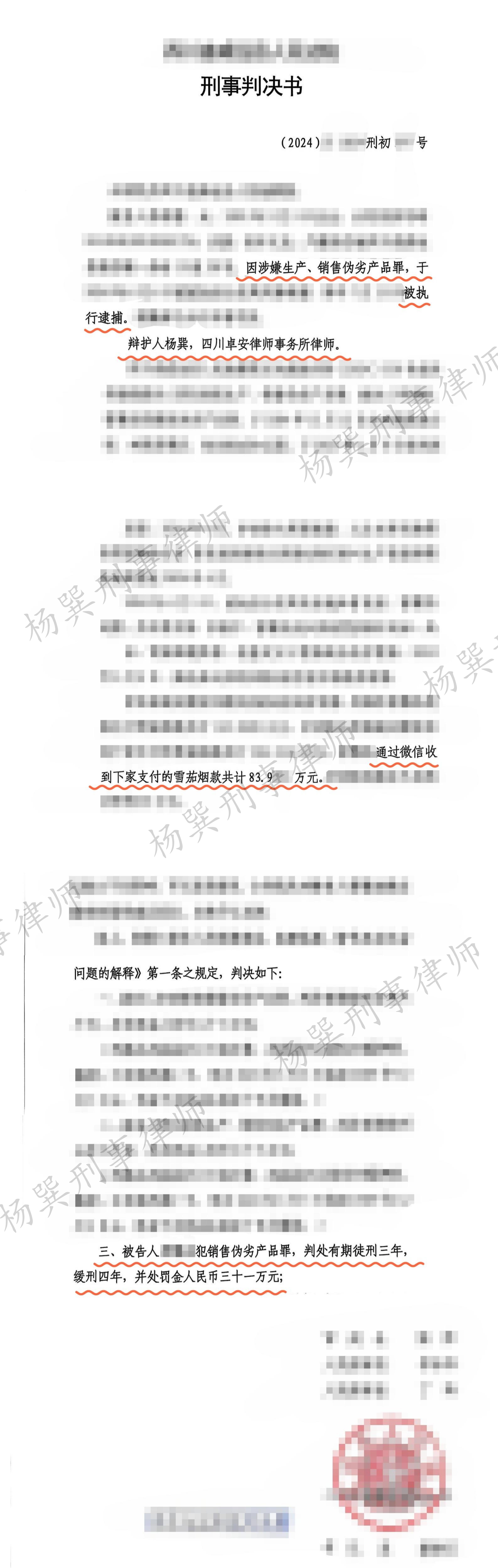 从判决书内容来看,我对指控罪名、事实、金额均无异议,但判决书不会体现办案全貌,前期的会见、沟通、文书等工作必不可少。我曾想,如果我的当事人缓了,其他被告人怎么判?怎么体现全案的量刑均衡问题?如果按照有利于当事人的角度去认定销售金额与违法所得金额,证据方面是否扎实?会不会错判等等。思考这些,是因为办理刑事案件本就应该多站在法官、检察官的角度分析问题,找到合适的方法解决问题。在2024年认罪认罚适用率高达86.9%,法院采纳检察院量刑建议率高达96.6%的现状下,我认为律师和检察官在法庭上唇枪舌剑的情况会越来越少,更多是在庭前的沟通协商,当然遇到愿意和律师沟通协商的司法办案人员也很关键,否则很难有效辩护。这个案子很幸运,检察官和法官都非常愿意和律师充分沟通协商,虽然协商过程中也存在对抗,但对抗只是一种手段,不是目的,目的是维护当事人的合法权益,用智慧的方式解决难题,争取最有利于当事人的结果。