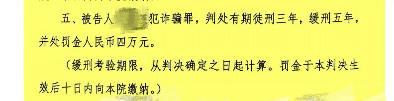 经人民法院开庭审理,合议庭充分采纳我提出的全部核心辩护意见,综合考量全案事实、宋某在中的作用地位,以及其具备初犯、坦白、全额退缴违法所得、真诚悔罪等多项法定及酌定从宽情节,最终突破“数额特别巨大”的常规量刑逻辑,作出一审判决:认定宋某构成诈骗罪,判处三年,缓刑五年,并处。判决生效后,宋某顺利解除羁押,成功回归家庭与社会,实现超出当事人及家属预期的辩护成效,圆满完成委托使命。