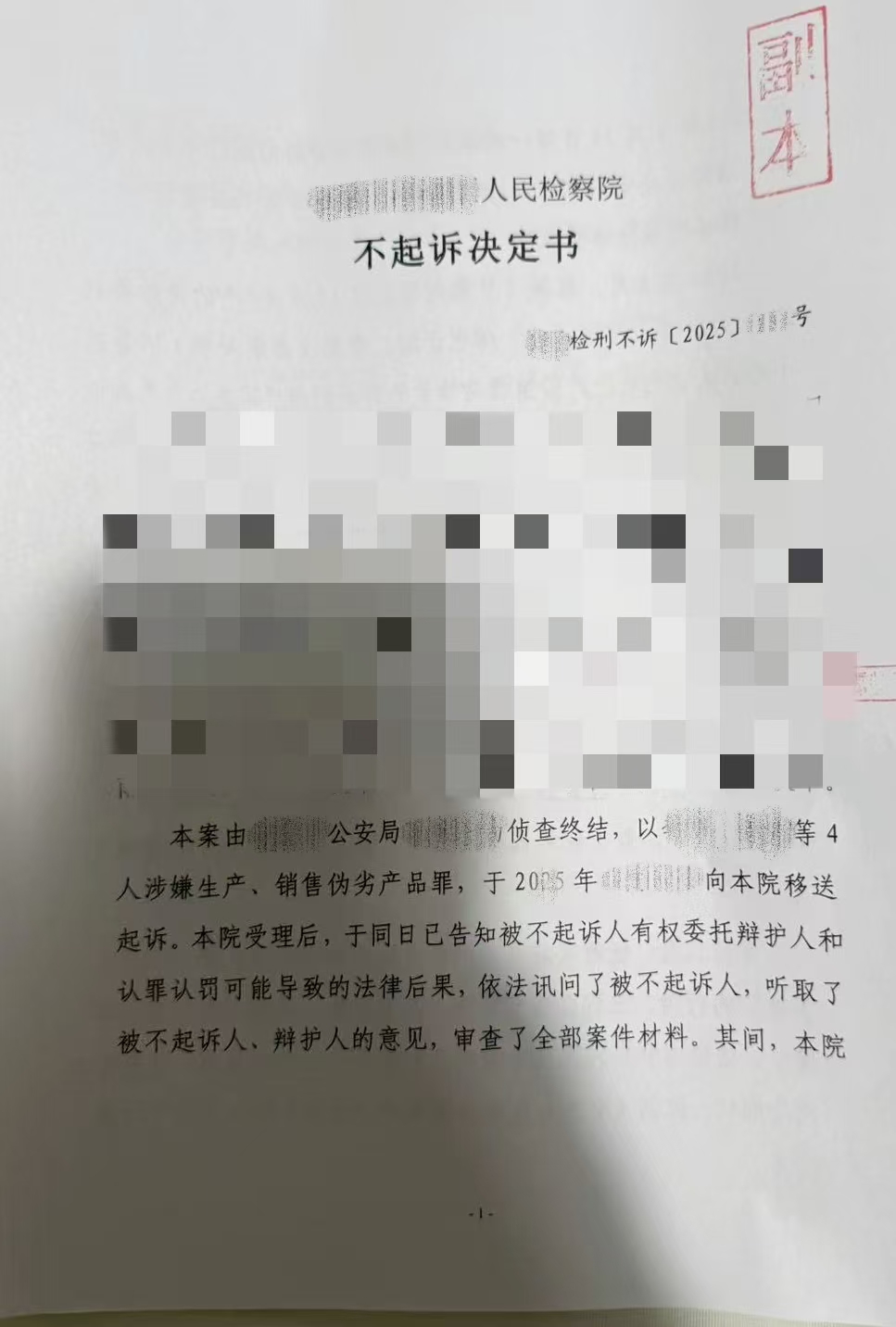 - 类案检索佐证本案应作不起诉处理。通过检索2021-2025年类似案例发现,多起涉案金额更高或未销售货值更大的案件中,因当事人具有自首、从犯、退赃、认罪认罚等情节,均被检察机关作出不起诉决定。本案应遵循“同案同判”原则,对Y某作出不起诉处理。