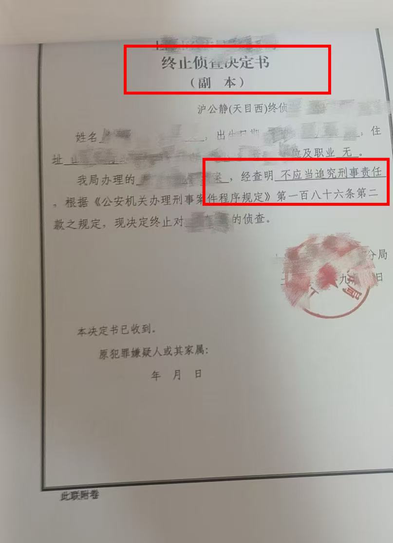 办案机关经全面审查案件事实、证据材料及解文清律师提交的辩护意见后,采纳了律师关于刘某不构成刑事犯罪的辩护观点。最终,公安机关依法作出《终止调查决定书》,认定刘某涉嫌诈骗罪的事实不清、证据不足,不构成刑事犯罪,并出具《解除决定书》,依法解除对刘某的取保候审措施,全额退还取保候审保证金。刘某成功恢复人身自由,其个人声誉及合法权益得到充分维护,本案取得了无罪辩护的圆满结果。