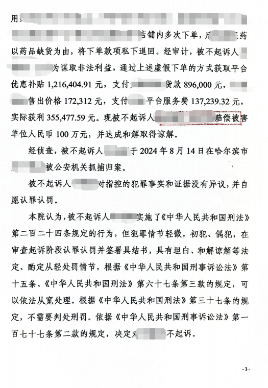 - 精准发力,推动两次退侦:辩护人将整理完毕的数百页证据材料提交给检察机关,证据清晰呈现了XX平台员工参与 “刷单” 指导、L某对平台规则存在合理信赖等关键事实,直接动摇了侦查机关指控的核心依据,促使检察官两次退回公安补充侦查。
