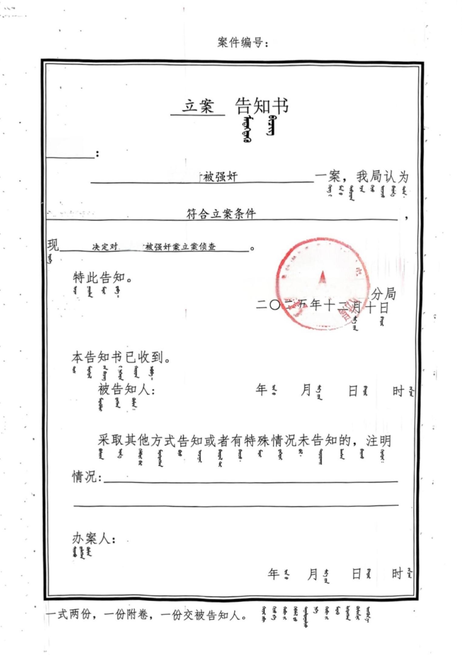 2025年12月10日,公安机关出具《立案告知书》,决定对N某某涉嫌强奸案立案侦查。
