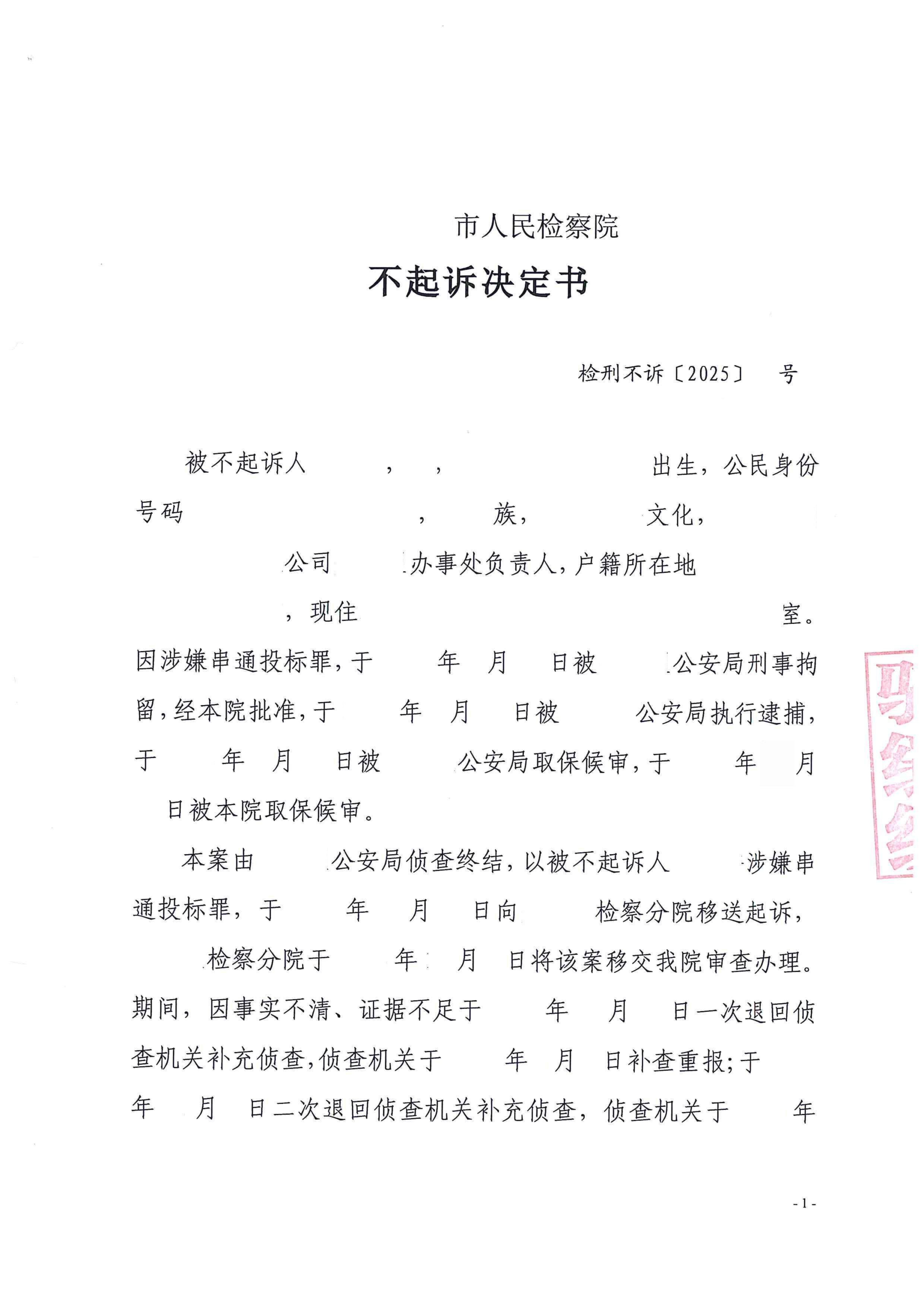 此阶段的最终成效:通过这份聚焦且有力的法律意见,辩护工作不仅回应了补侦材料,更对侦查机关试图加固的整个指控体系完成了釜底抽薪式的法理与证据反驳。通过论证“行贿”事实不清、关联断裂,“损害”后果虚无、因果不存,最终夯实了全案“事实不清、证据不足”的辩护立场,直接推动了检察机关依法作出不起诉决定。
