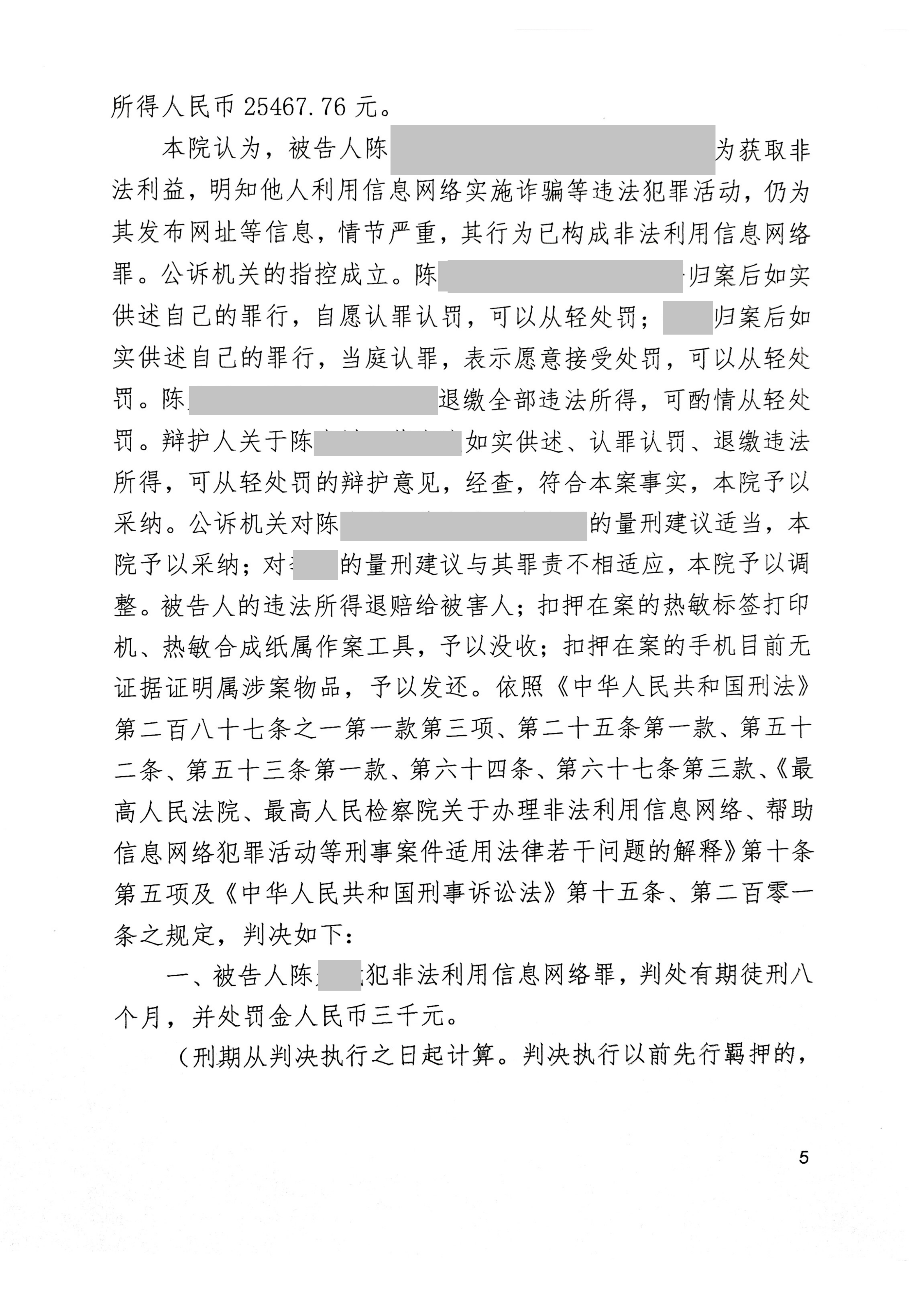 犯非法利用信息网络罪,判处八个月,并处三千元。